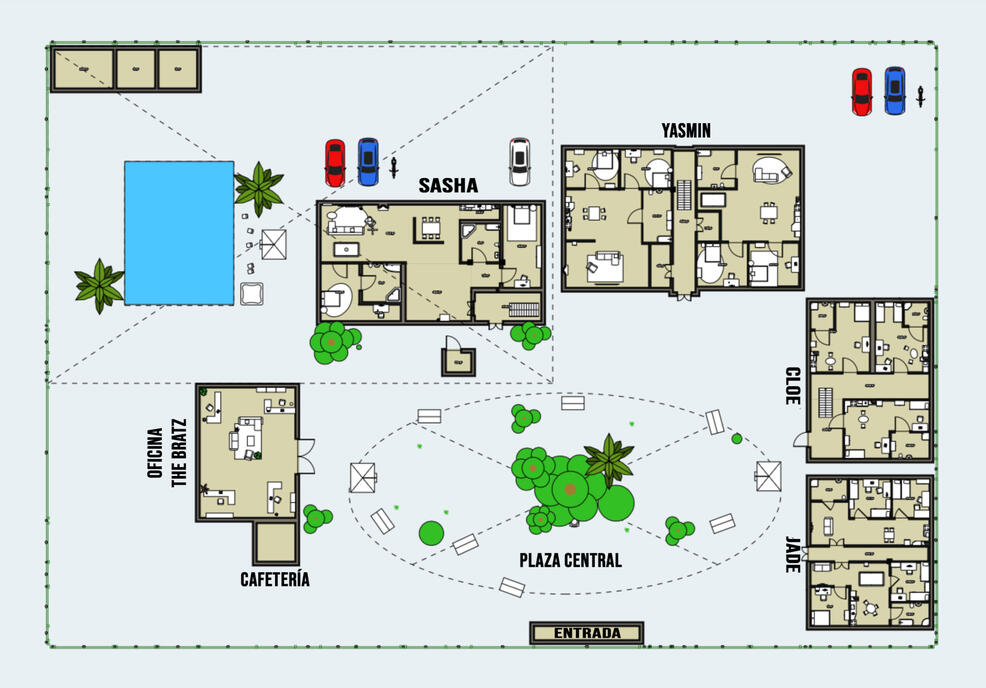𝓝uestra urbanización privada ubicada en Seúl se divide en cuatro bloques: JADE, CLOE, YASMIN y SASHA. Como has podido comprobar, son nuestros nombres y cada una de nosotras se encarga de atender las necesidades de los vecinos; no dudes usar el número de teléfono pegado en la nevera por si surge cualquier problema o necesidad, o bien puedes acudir a nuestra oficina en el pequeño edificio que hay justo a la izquierda.Los cuatro bloques tienen el mismo punto de unión: la plaza central (TL), donde se ubica el gran árbol que lucirá sus hojas naranjas en otoño y rosas en primavera; es una zona tan cuidada que uno puede elegir si sentarse en un banco o en el césped sin temor a ensuciarse. Sin embargo, no es lo único que encontrarás por Stilesville.